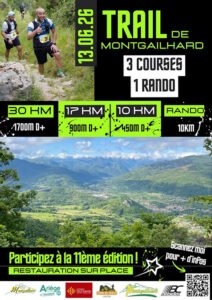 Calendrier SélectionnerjanvierfévriermarsavrilmaijuinjuilletaoûtseptembreoctobrenovembredécembreSélectionner2026 Réinitialiser 15 février 2026 Trail du Maquis DUN 22 février 2026 Trail des coteaux de Pamiers Pamiers 07 - 08 mars 2026 Labatutrail Labatut 14 mars 2026 Trail des Résistants Castelnau Durban 22 mars 2026 La Gajanaise Gajan 05 avril 2026 Trail des Citadelles Lavelanet 11 avril 2026 Fast Hiking de la Barguillière Saint Pierre de Rivière 12 avril 2026 Pentes & Cotes Saverdun 19 avril 2026 Randonnée de l’eau Saint Amadou 19 avril 2026 Trail de l’Hers La Bastide sur l'Hers 26 avril 2026 Chaussez vos baskets contre le cancer du sein Prat Bonrepaux 03 mai 2026 Trail du Quartz Prayols 23 mai 2026 MDO Trail Les monts d'Olmes 24 mai 2026 Foulées de Mazères Mazeres 30 mai 2026 Challenge Alain Leplus Auzat 05 juin 2026 Corrida des Pictes Montaut 13 juin 2026 Trail de Montgailhard Montgailhard 14 juin 2026 Trail de la cascade d’Ars Aulus les bains 20 juin 2026 MontFourcatrail Saint Paul de Jarrat 02 juillet 2026 Afterwork du Quartz Prayols 04 juillet 2026 Trail du pic des 3 seigneurs Banat 12 juillet 2026 Trail De La Dent D’orlu Orlu 17 - 19 juillet 2026 Ultrariege Ax les Thermes 19 juillet 2026 Trailhnouet de Vernajoul Vernajoul 26 juillet 2026 Corrida de Mazères Mazeres 31 juillet 2026 La Bézacoise Bezac 08 août 2026 La Montségurienne 1244 Montségur 13 - 16 août 2026 Challenge du Montcalm Auzat 15 août 2026 La Cadarcetoise Cadarcet 23 août 2026 Marathon & Semi Des Oussailles Saint Girons 30 août 2026 Trophée de l’Isard L'Hospitalet Près l'Andorre 05 septembre 2026 Rando de Font-Co Les Pujols 12 septembre 2026 Trail des cascades Roquefort les Cascades 19 septembre 2026 Trail du Picou Saint Pierre de Rivière 26 septembre 2026 Calabasstrail Saint Lary 27 septembre 2026 VIRADE DE l’ESPOIR 11 octobre 2026 Tour du lac de Montbel Leran 17 octobre 2026 L’ESCUROISE TRAIL ET MARCHE Lescure 24 octobre 2026 LACOSTOTRAIL Le Vernet d'Ariege 31 octobre 2026 Las Quatras Cabanas Saurat 07 novembre 2026 La Gailhardaise Montgailhard 15 novembre 2026 TRAIL DU COUSERANS Saint Girons 05 décembre 2026 CORRIDA DE PAMIERS Pamiers 19 décembre 2026 La Corrida Tarascon Tarascon sur Ariege Aucun événement trouvé ! Vous préférez la version à lire de la prochure Lire la brochure en ligne...